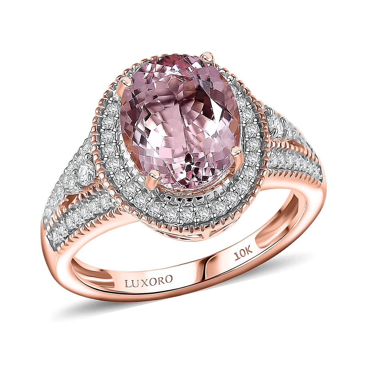 Luxoro Premium Pink Morganite and Diamond I2 2.90 ctw Rose Temptation Ring in 10K Rose Gold (Size 5.0)