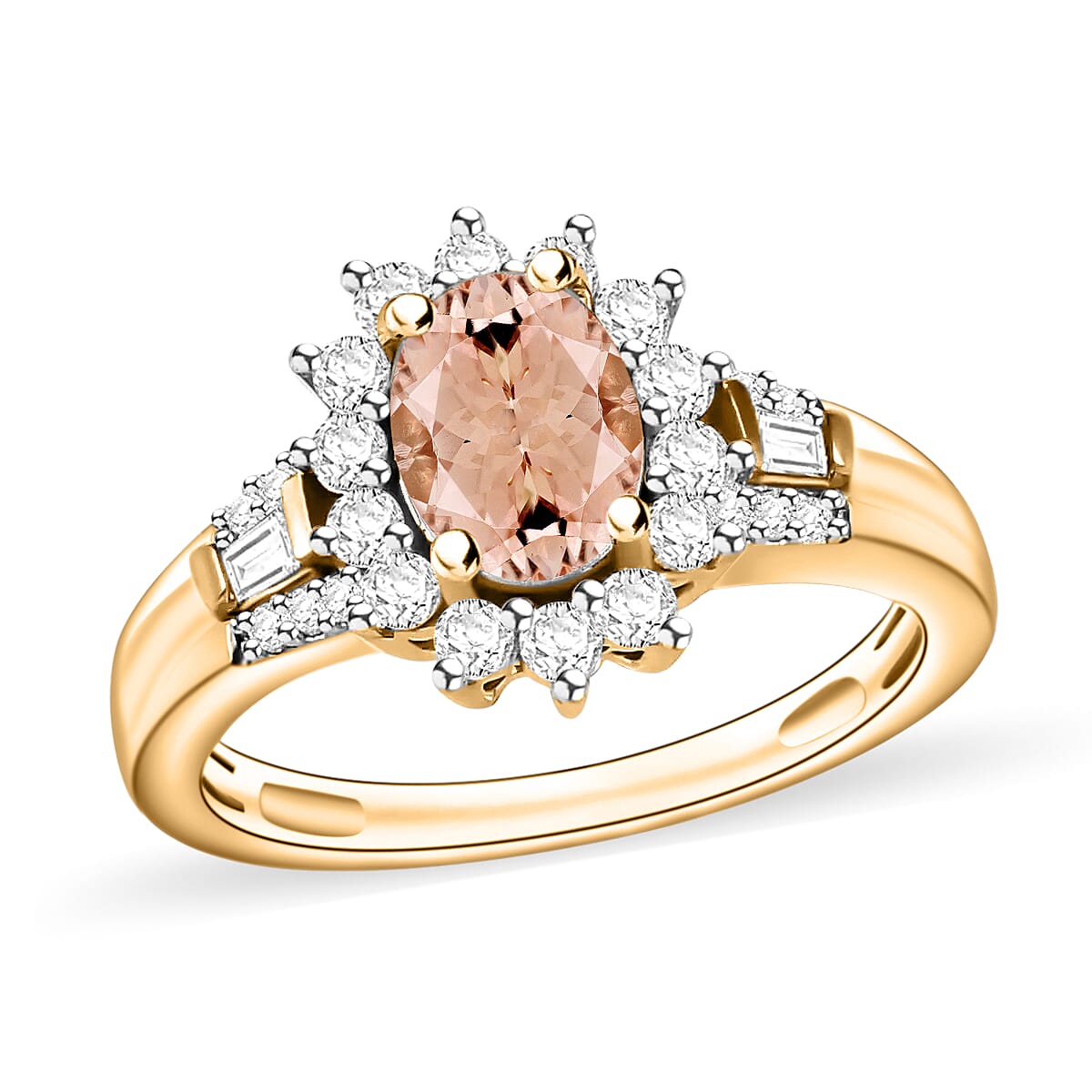 Luxoro Premium Pink Morganite and G-H I1 Diamond 1.20 ctw Ring in 14K Yellow Gold (Size 9.0) (Del. in 10-12 Days)