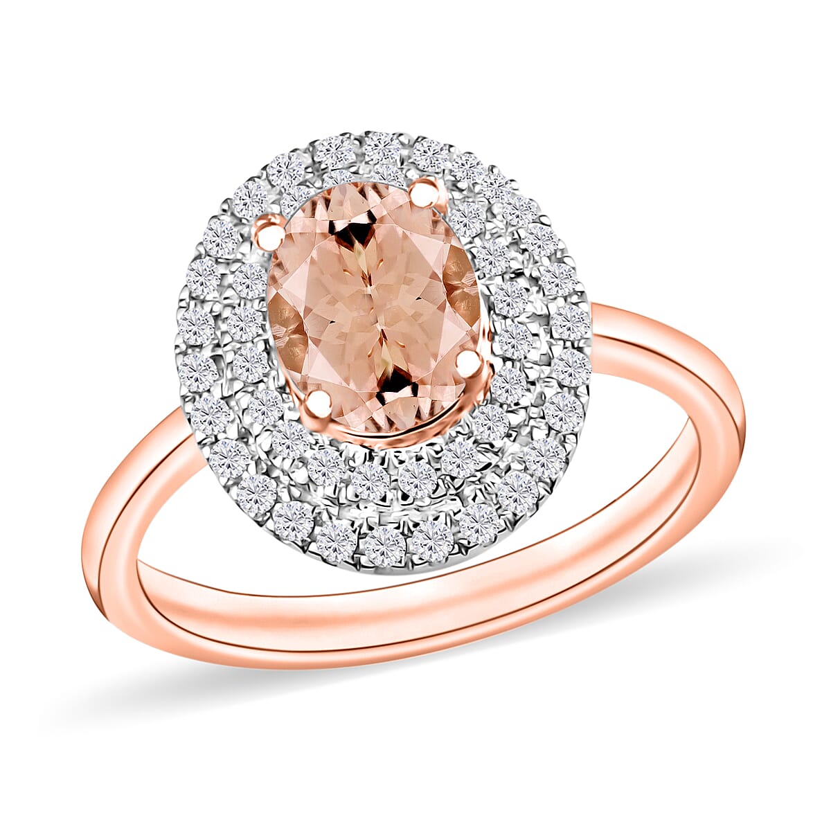 Luxoro Premium Pink Morganite and G-H I1 Diamond 1.65 ctw Double Halo Ring in 14K Rose Gold (Size 6.0) (Del. in 10-12 Days)