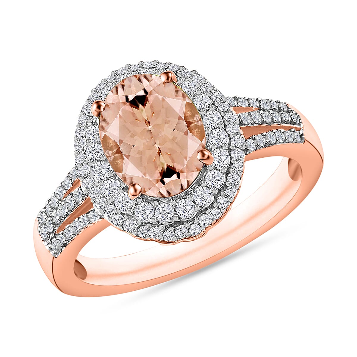 Luxoro Premium Pink Morganite and G-H I1 Diamond 3.00 ctw Double Halo Ring in 14K Rose Gold (Size 7.0) (Del. in 10-12 Days)