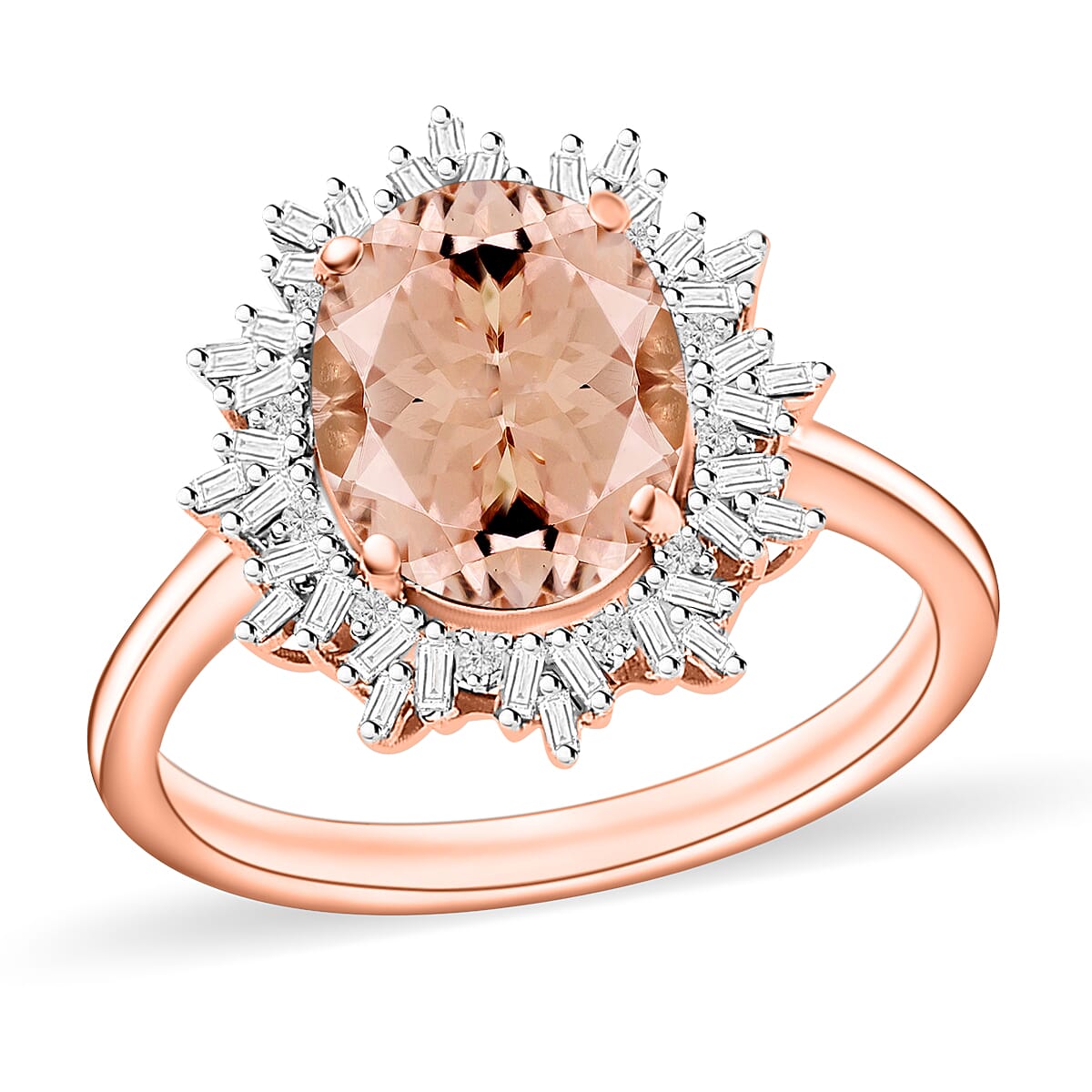 Luxoro Premium Pink Morganite and G-H I1 Diamond 5.30 ctw Ring in 14K Rose Gold (Size 9.5) 4.30 Grams (Del. in 10-12 Days)