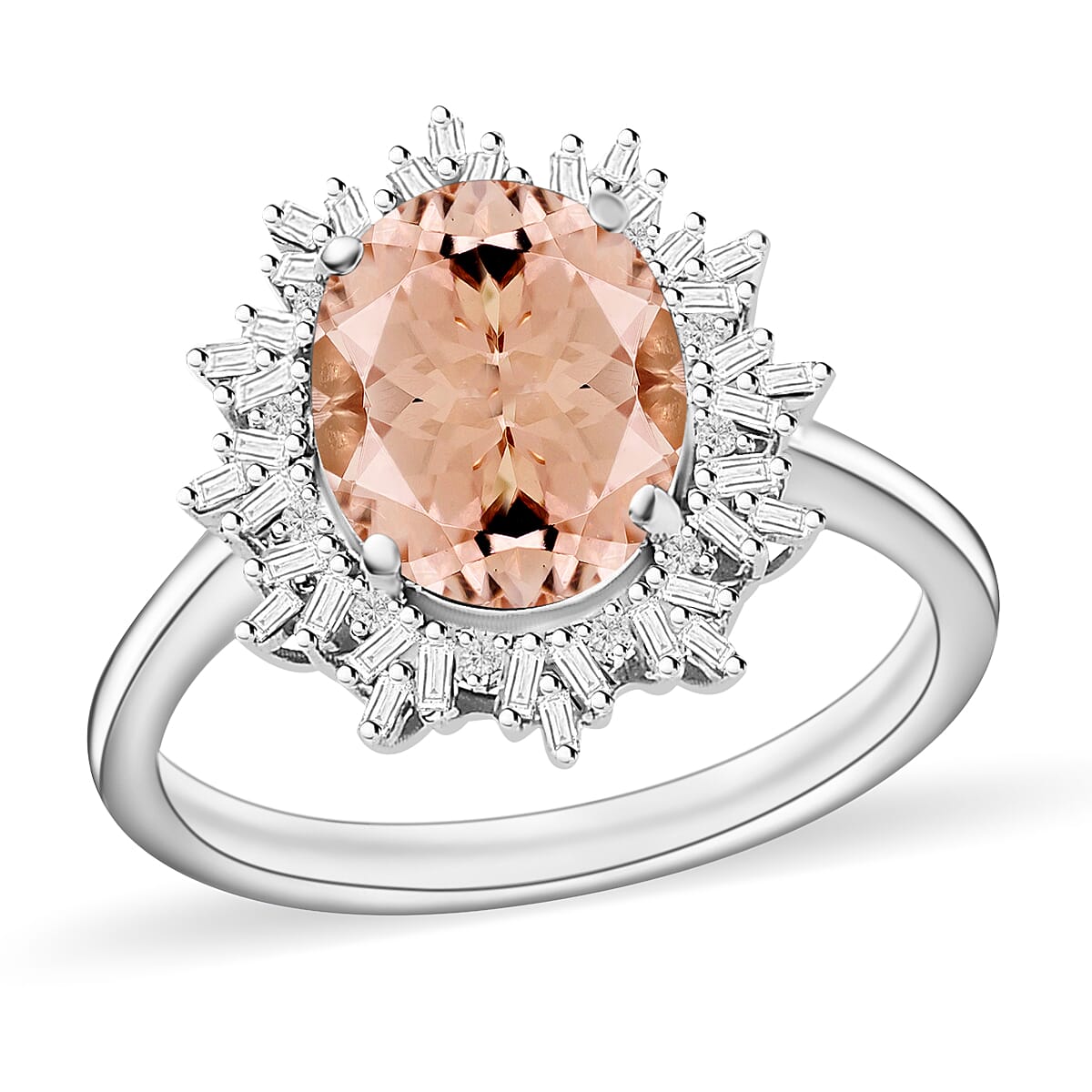 Luxoro Premium Pink Morganite and G-H I1 Diamond 5.30 ctw Ring in 14K White Gold (Size 9.5) 4.30 Grams (Del. in 10-12 Days)