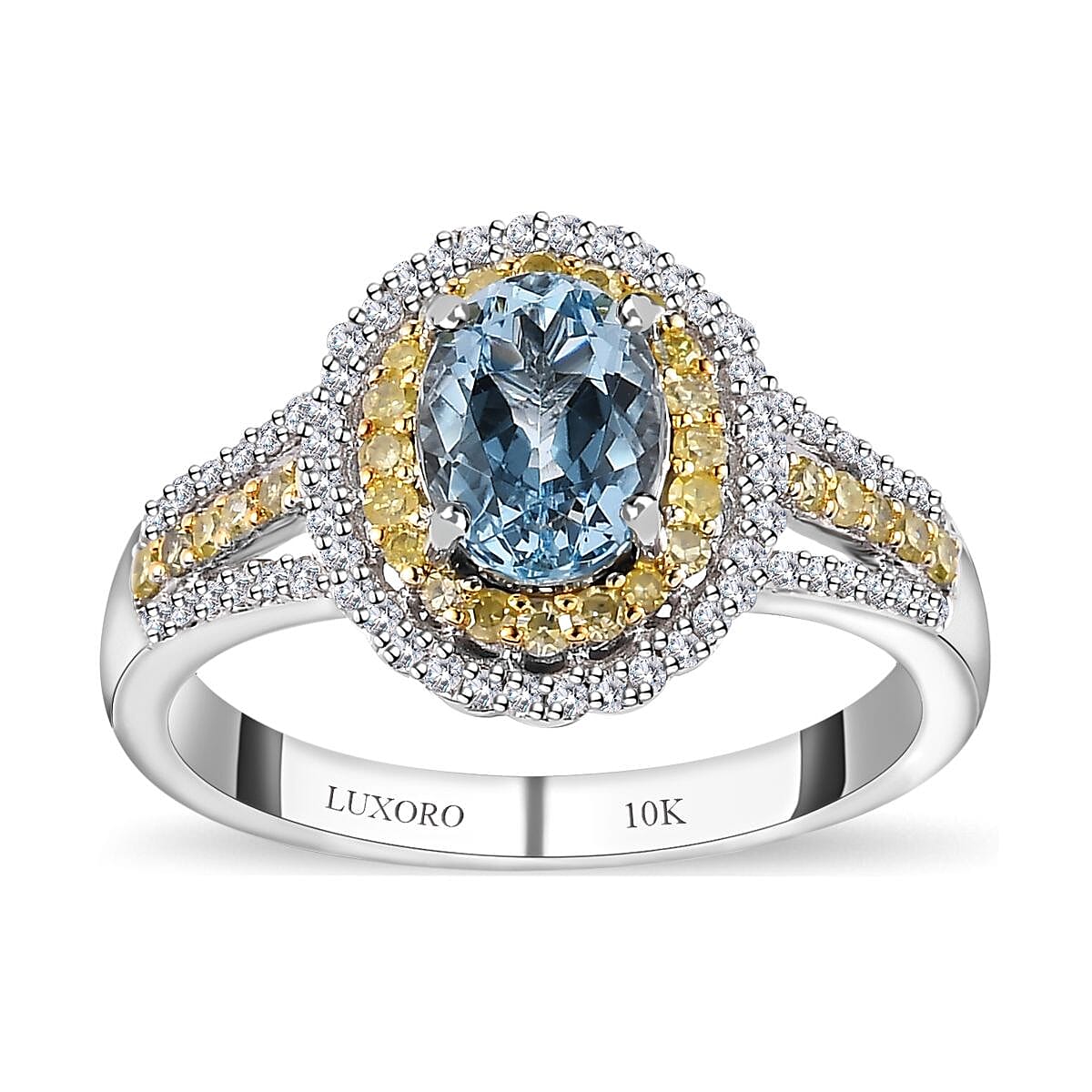 Luxoro Premium Santa Maria Aquamarine, I2-I3 Natural Yellow and White Diamond 1.65 ctw Ring in 10K White Gold (Size 9.0) 4.35 Grams