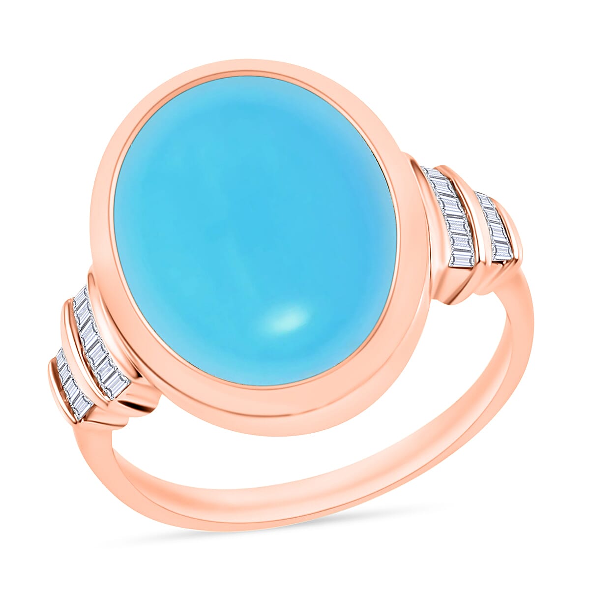 Luxoro Premium Sleeping Beauty Turquoise and G-H I3 Diamond 8.41 ctw Ring in 10K Rose Gold (Size 10.5) (Del. in 10-12 Days)