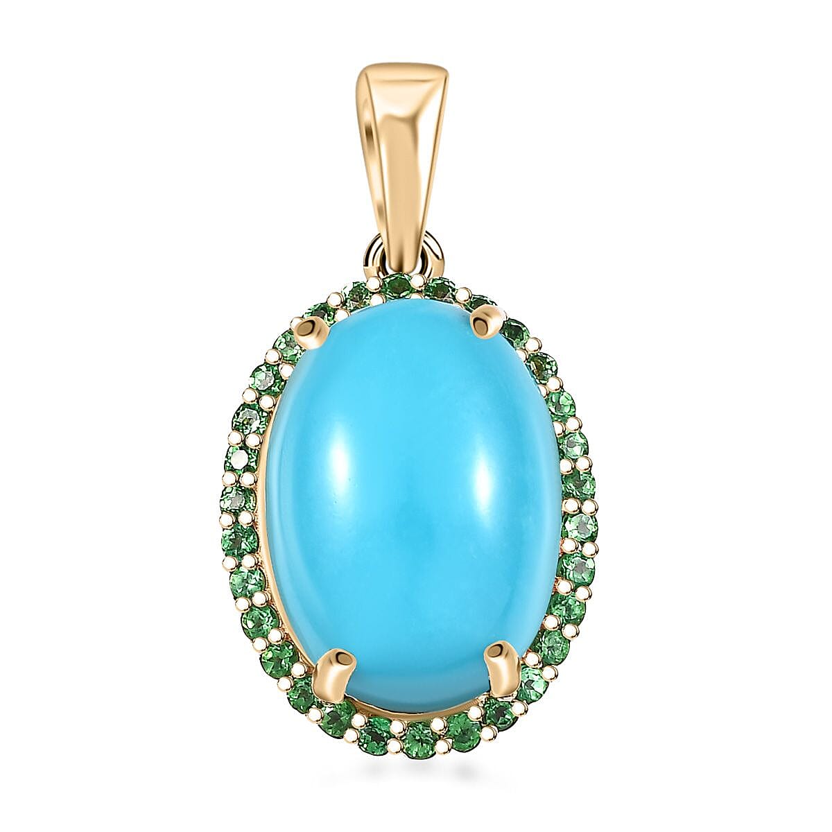 Luxoro Premium Sleeping Beauty Turquoise and Tsavorite Garnet 5.30 ctw Pendant without Chain in 10K Yellow Gold