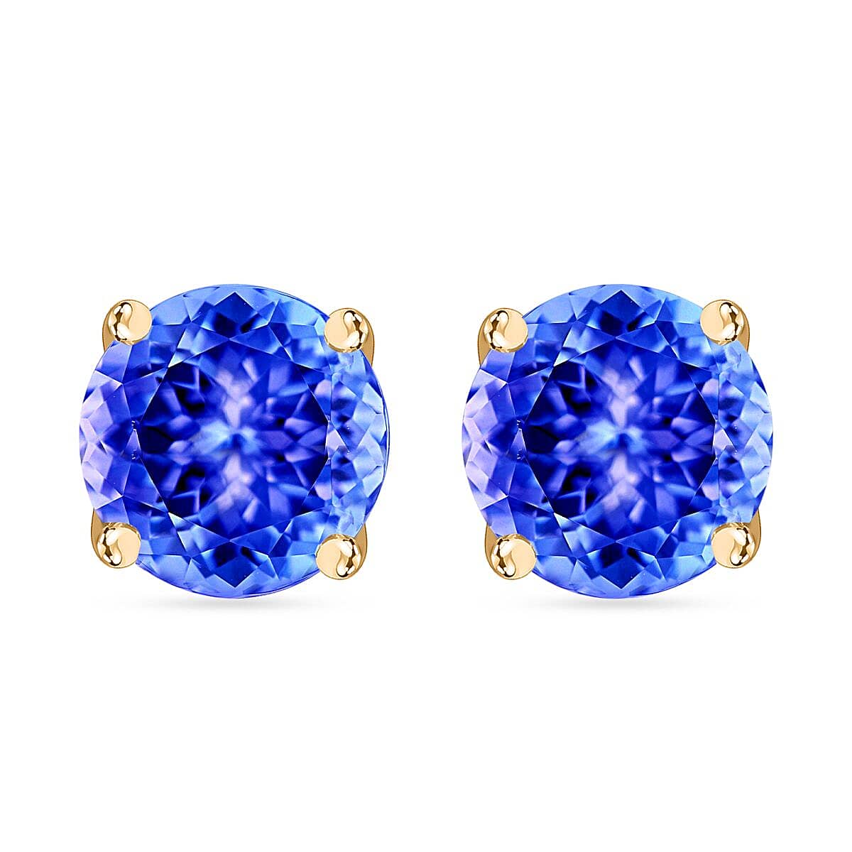 Luxoro Premium Tanzanite 1.80 ctw Solitaire Stud Earrings in 14K Yellow Gold (Del. in 10-12 Days)
