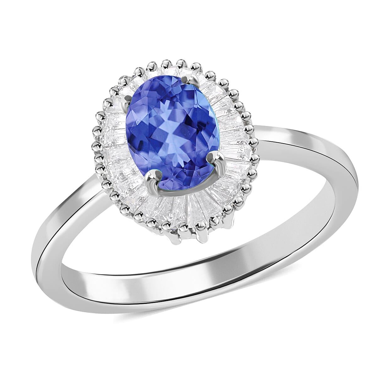 Flaunt your exceptional style with this tanzanite ring in durable metal. The violet-blue tanzanite captivates against brilliant diamond baguettes in perfect harmony. You'll cherish this premium custom ring for its remarkable elegance and luxurious appeal.
