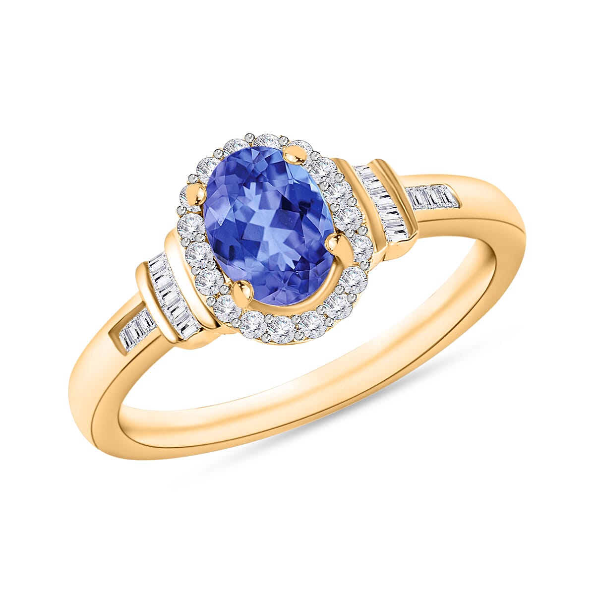 Luxoro Premium Tanzanite and G-H I1 Diamond 1.00 ctw Ring in 14K Yellow Gold (Size 7.0) (Del. in 10-12 Days)