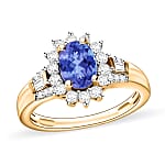 Luxoro Premium Tanzanite and G-H I1 Diamond 1.20 ctw Sunburst Ring in 14K Yellow Gold (Size 4.5) (Del. in 10-12 Days)