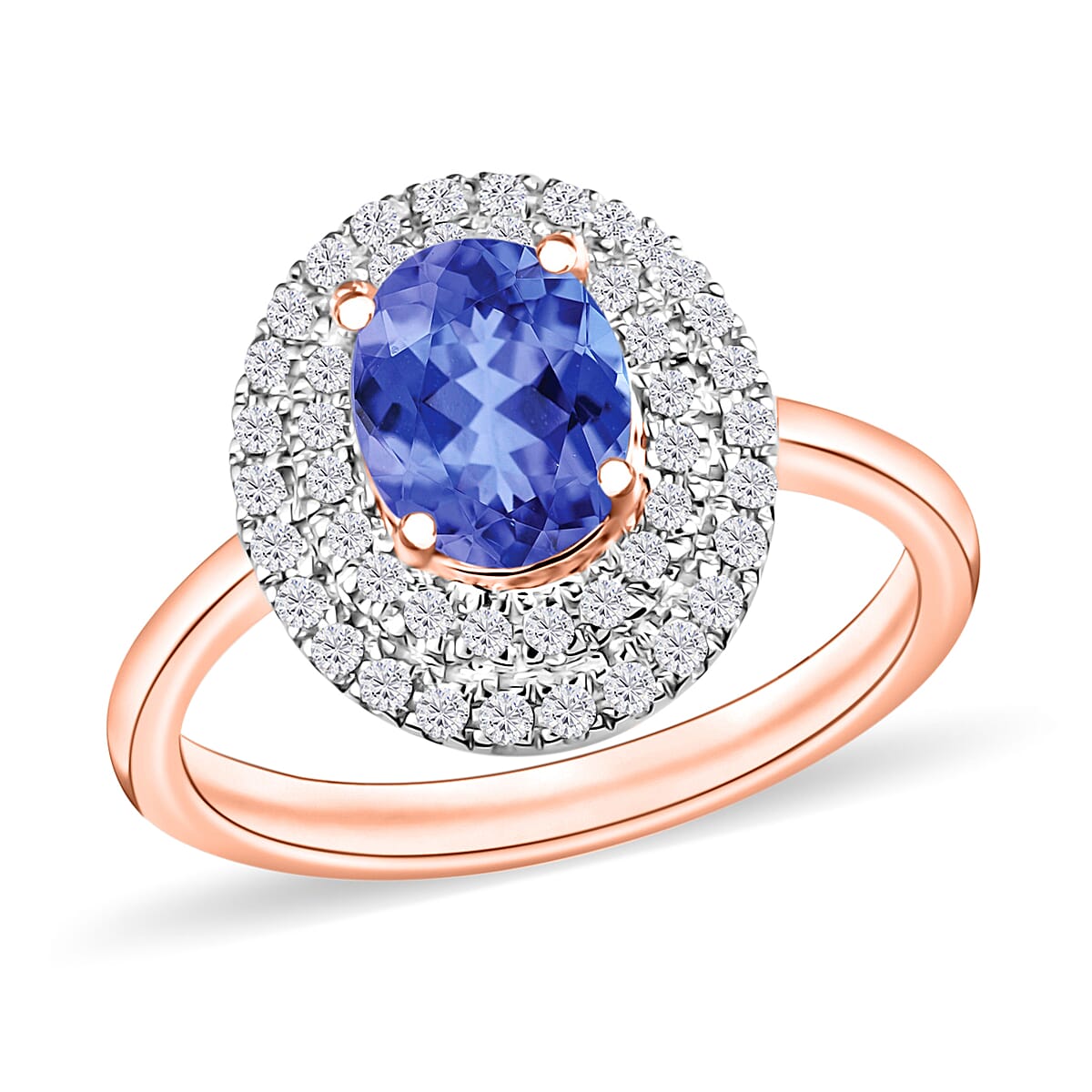 Luxoro Premium Tanzanite and G-H I1 Diamond 1.60 ctw Double Halo Ring in 14K Rose Gold (Size 5.5) (Del. in 10-12 Days)