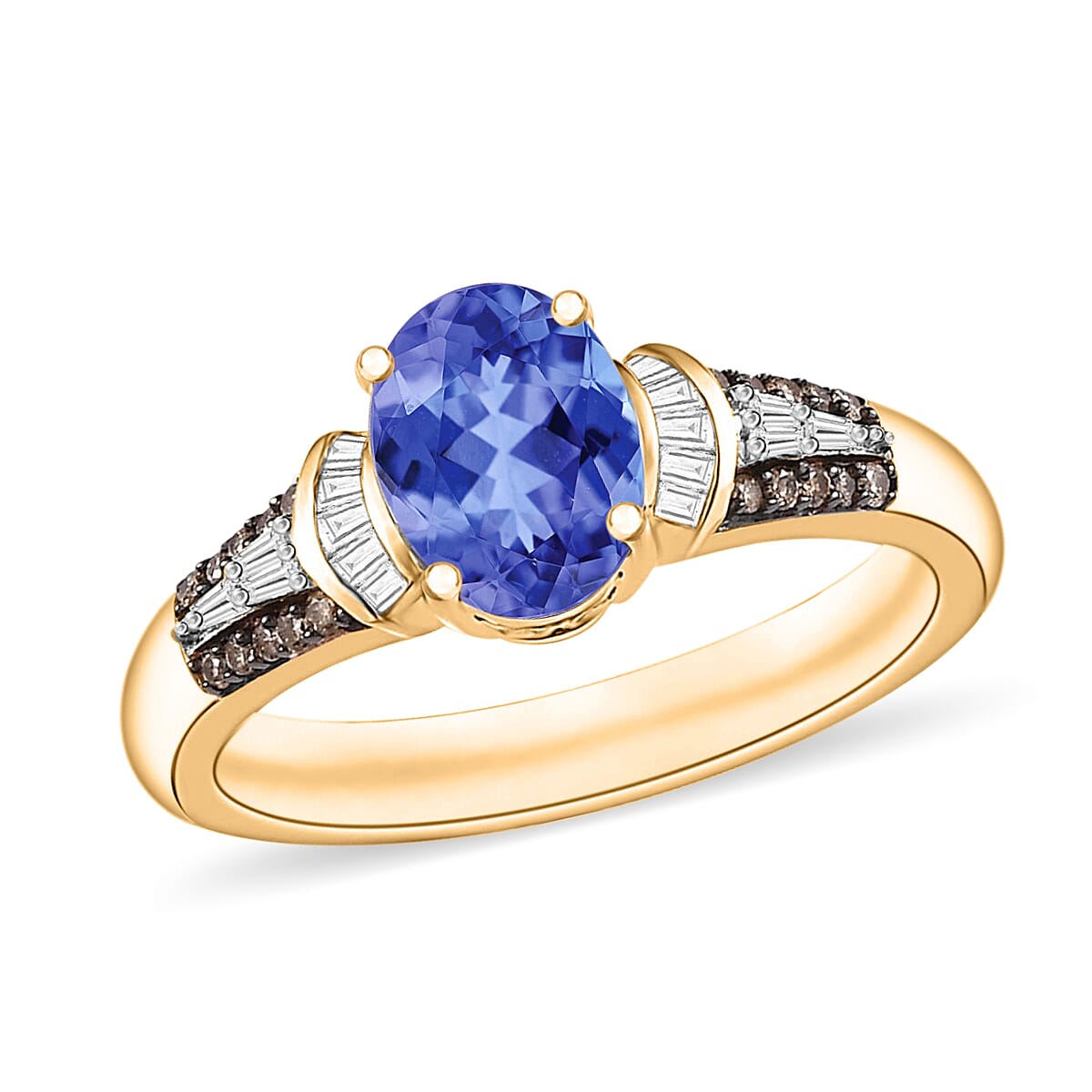 Luxoro Premium Tanzanite and G-H I1 Diamond 1.60 ctw Ring in 14K Yellow Gold (Size 9.5) (Del. in 10-12 Days)