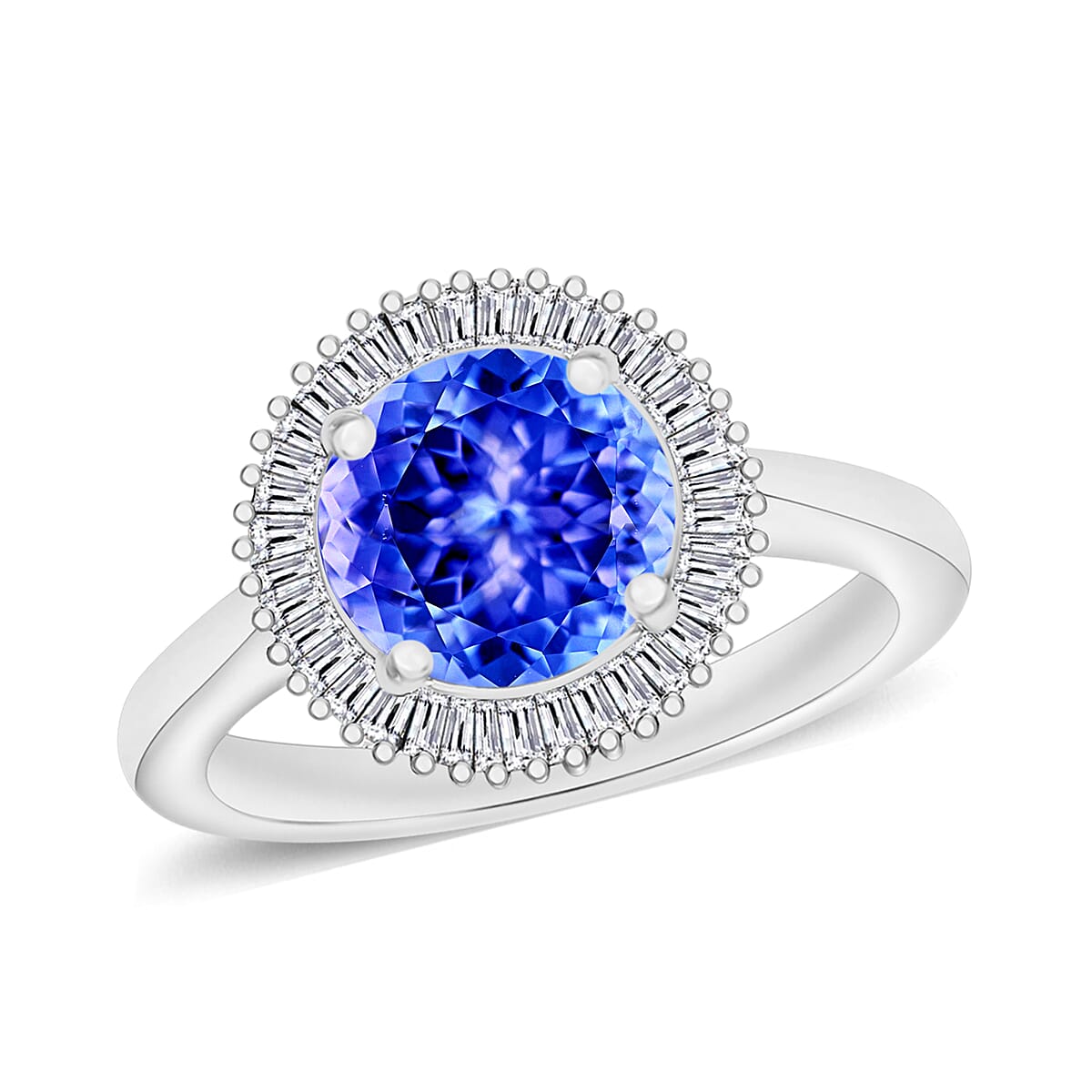 Shine brilliantly with this tanzanite-and-diamond ring in durable metal. The violet-blue tanzanite creates a stunning focal point surrounded by sparkling diamonds. You will captivate admirers with this custom ring and remarkable craftsmanship.