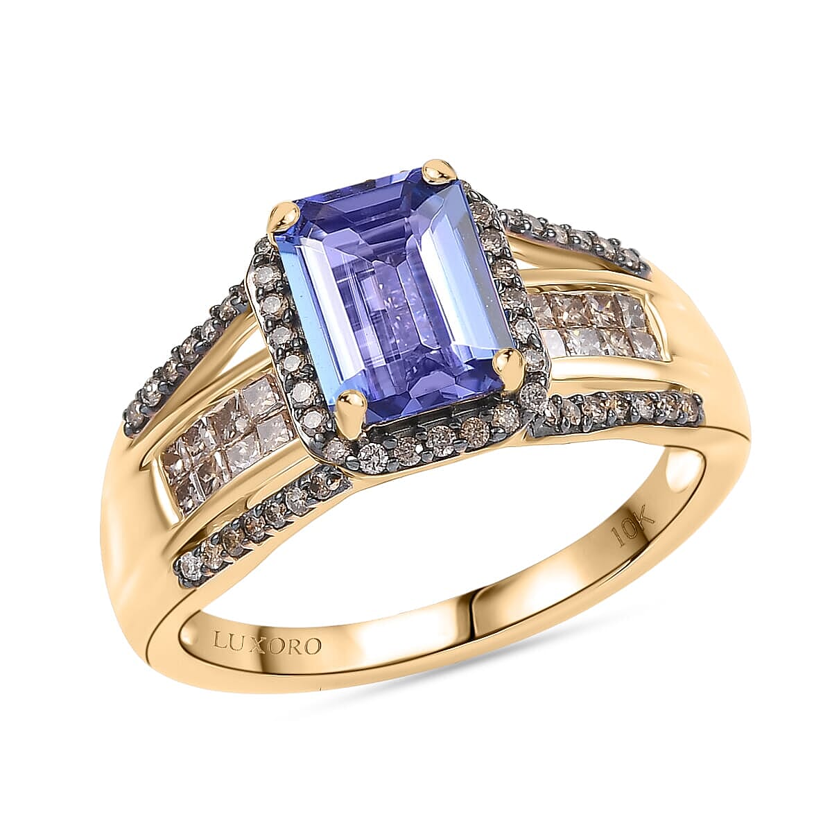 Luxoro Premium Tanzanite and I2 Natural Champagne Diamond 2.05 ctw Bridge Ring in 10K Yellow Gold (Size 8.5)