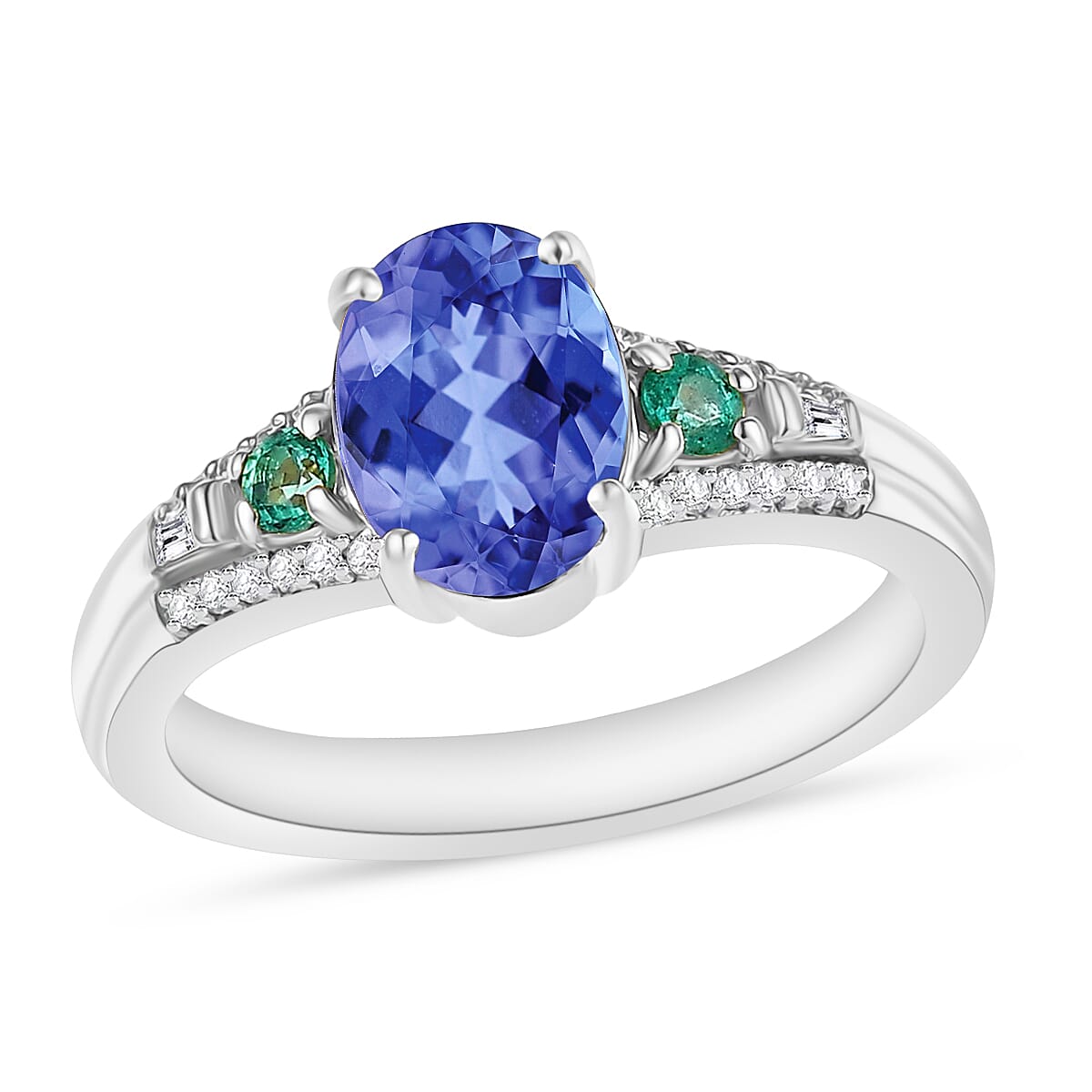 Luxoro Premium Tanzanite, Boyaca Colombian Emerald and G-H I2 Diamond 1.82 ctw Ring in 10K White Gold (Del. in 10-12 Days)