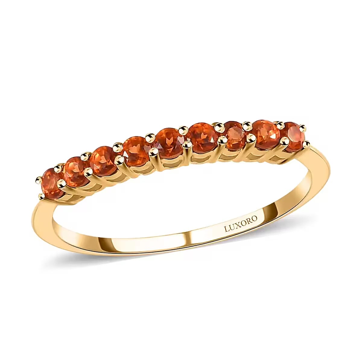 Luxoro Premium Viceroy Spessartine Garnet 0.50 ctw Ring, 10K Yellow Gold Ring, Half Band Ring, 9 Stone Ring, Gold Half Band Ring, Garnet Band Ring (Size 7.0)