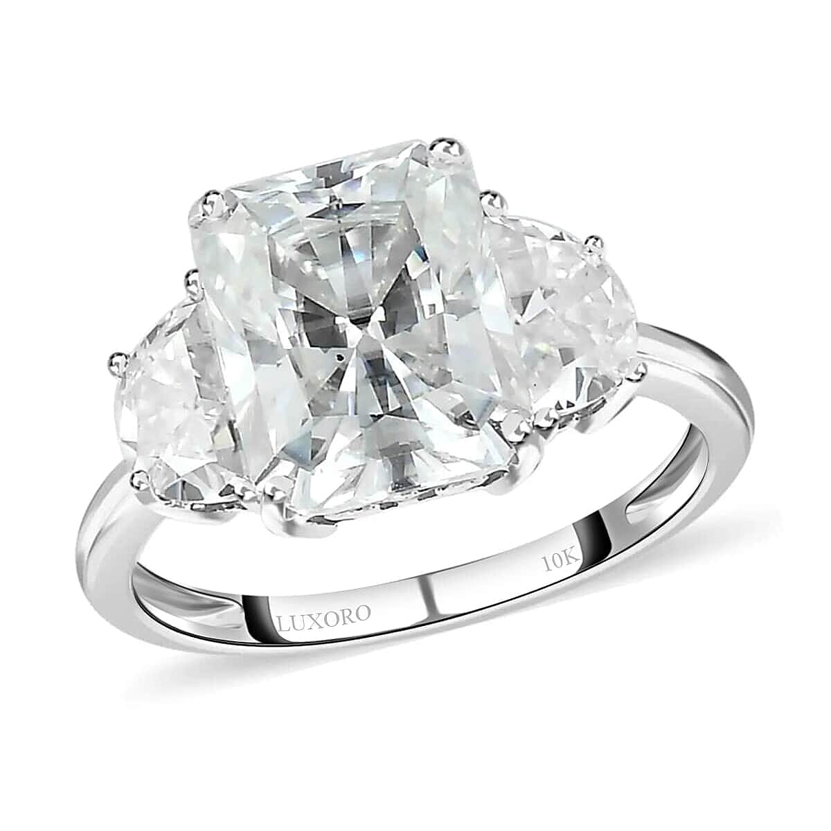 Luxoro Radiant Cut Moissanite 4.15 ctw Ring, Moissanite 3 Stone Ring, 10K White Gold Ring, Gold Three Stone Ring, Gold Jewelry For Her, Engagement Ring (Size 7.5)