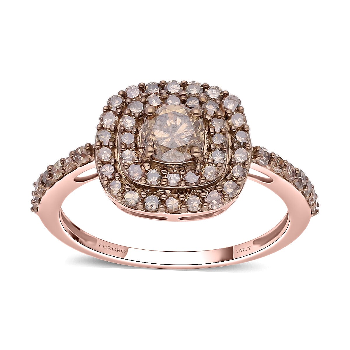 Luxoro SGL Certified 10K Rose Gold Natural Champagne Diamond Double Halo Ring (Size 7.0) 1.00 ctw