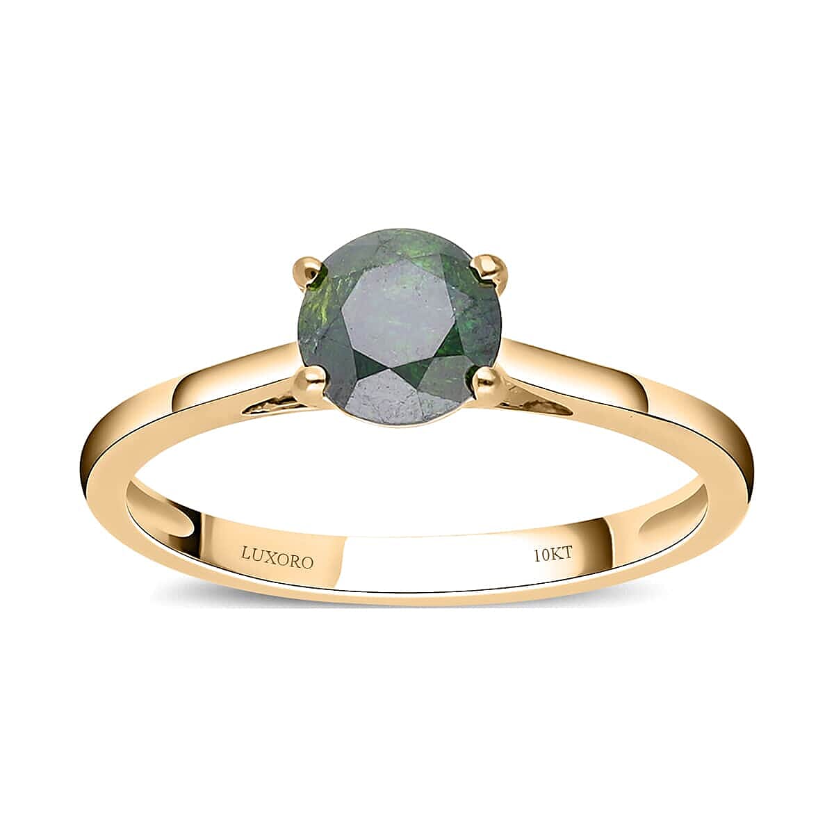 Luxoro SGL Certified Green Diamond Solitaire Ring, 10K Yellow Gold Ring, Diamond Ring, Gold Solitaire Ring, Promise Ring, Gold Gift For Her 1.00 ctw