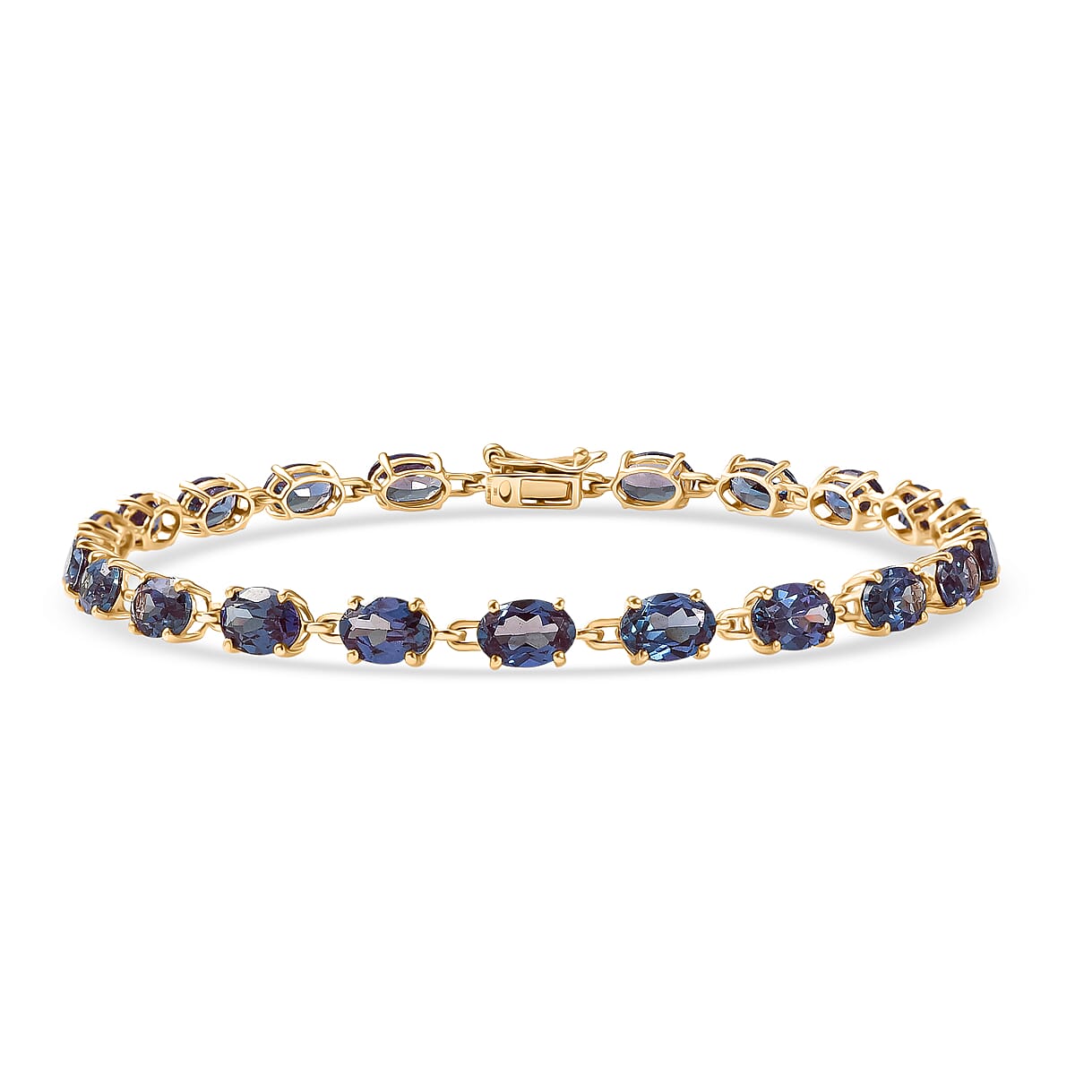 Enhance your style with this Luxuriant lab grown alexandrite bracelet in 10K yellow gold. This luxury gemstone bracelet for women showcases captivating color-changing alexandrites that radiate timeless elegance. Perfect for adding refined sophistication to both day and evening looks.