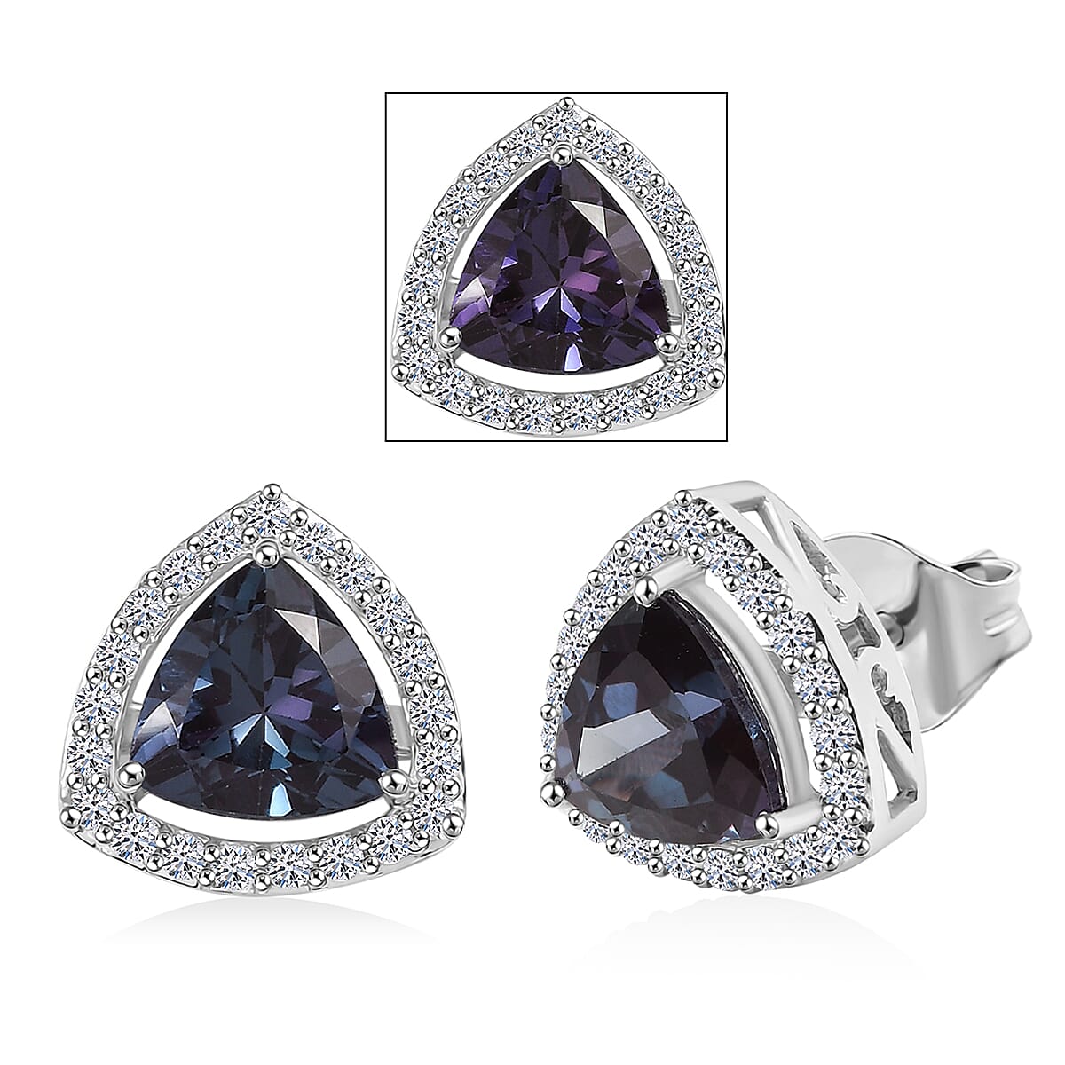 Luxuriant Diamond 10K White Gold AAA Lab Grown Alexandrite , Lab Grown Diamond GH, SI Earring 3.72 ctw