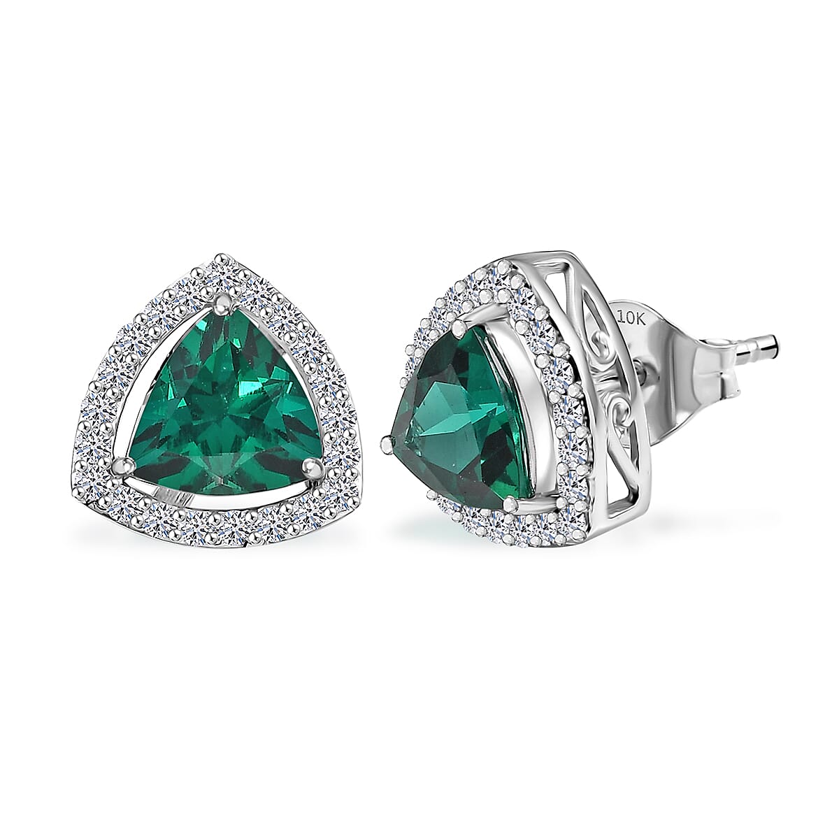 Enhance your look with these Luxuriant lab-grown emerald and diamond earrings in 10K white gold. These elegant stud earrings for women showcase vivid lab-grown emeralds accented with sparkling lab-grown diamonds. Crafted in 10K white gold, they offer refined brilliance for everyday wear and special occasions.