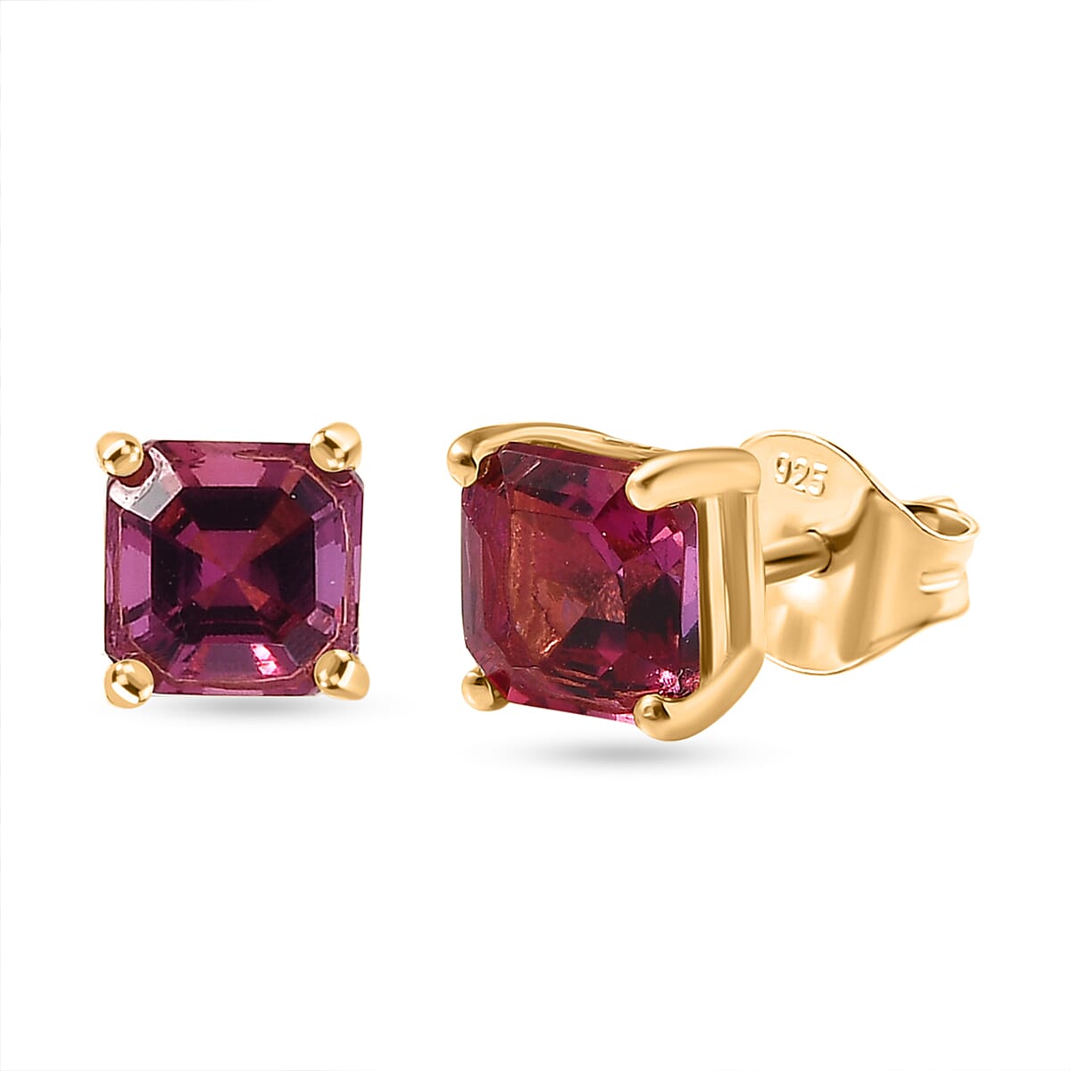 Elevate your look with these Luxuriant lab-grown bixbite earrings in 925 sterling silver. These elegant stud earrings for women feature vivid lab-grown bixbite with rich, captivating red brilliance. Finished in 18K vermeil yellow gold, they add bold sophistication ideal for everyday wear or special occasions.