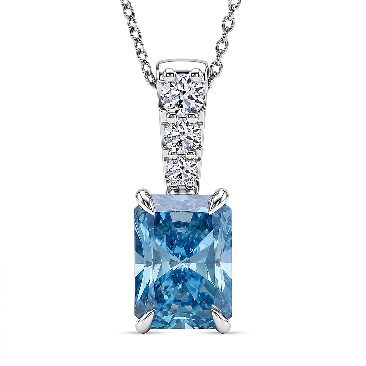 Luxuriant Lab Grown Blue Diamond and Lab Grown Diamond VS 3.00 ctw Pendant Necklace in Rhodium Over Sterling Silver 20 Inches (Ships in 10-12 Days)