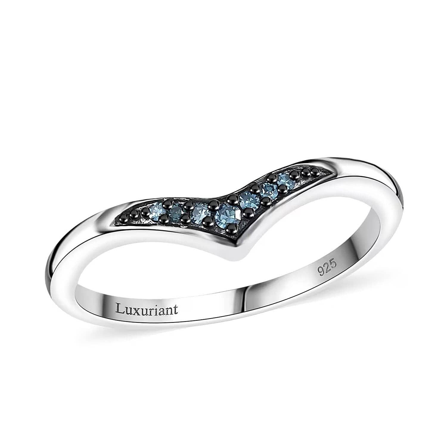 Luxuriant Lab Grown Blue Diamond (IR) 0.07 ctw Chevron Ring in Rhodium Over Sterling Silver (Size 9.0)