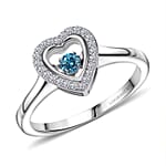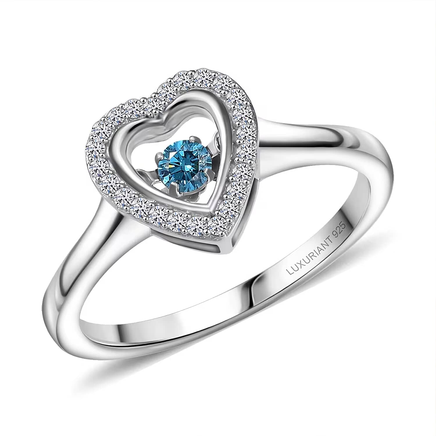 Luxuriant Lab Grown Blue Diamond (IR) and Lab Grown Diamond 0.22 ctw Dancing Heart Ring in Rhodium Over Sterling Silver