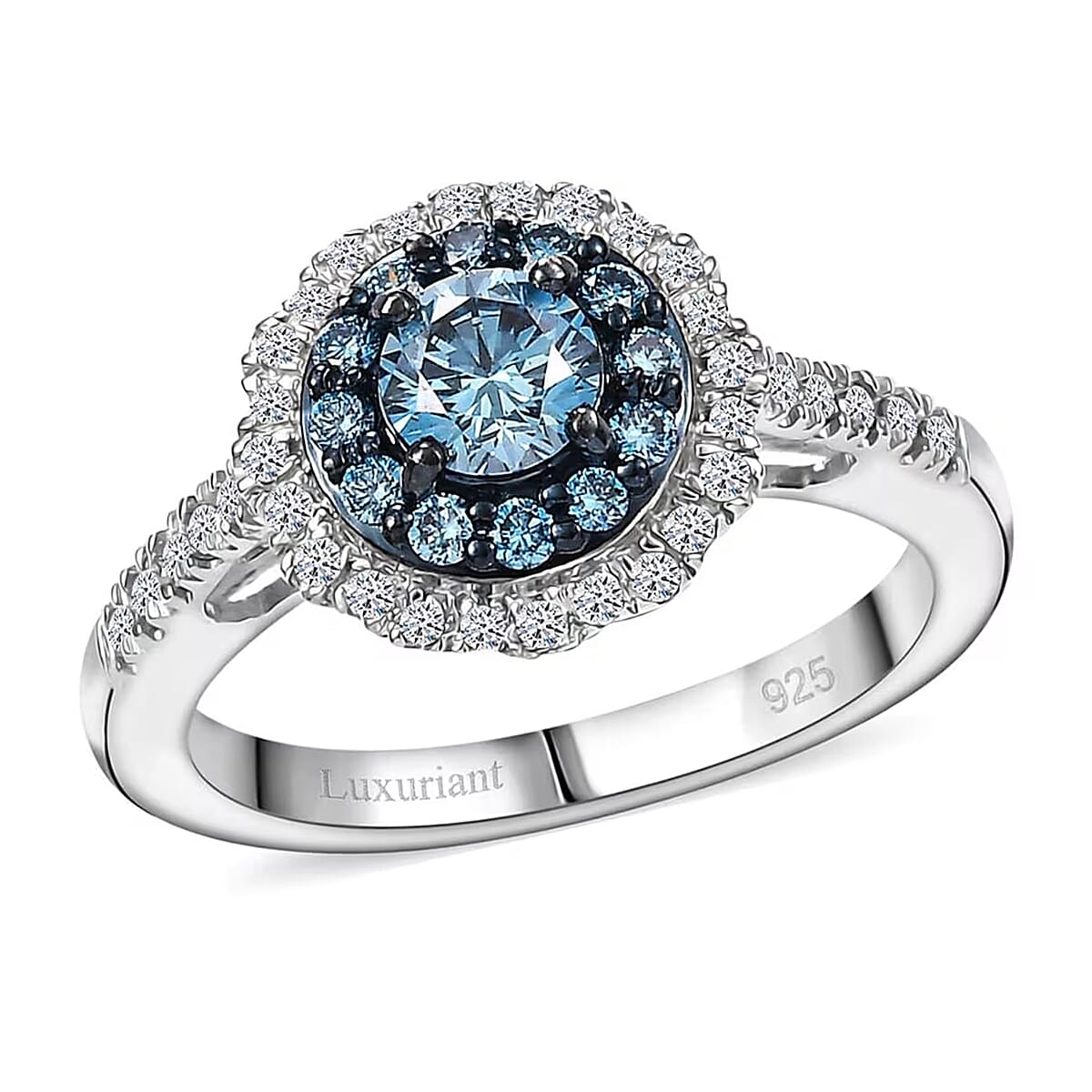 Luxuriant Lab Grown Blue Diamond (IR) and Lab Grown White Diamond SI 1.00 ctw Floral Ring in Rhodium Over Sterling Silver (Size 10.0)