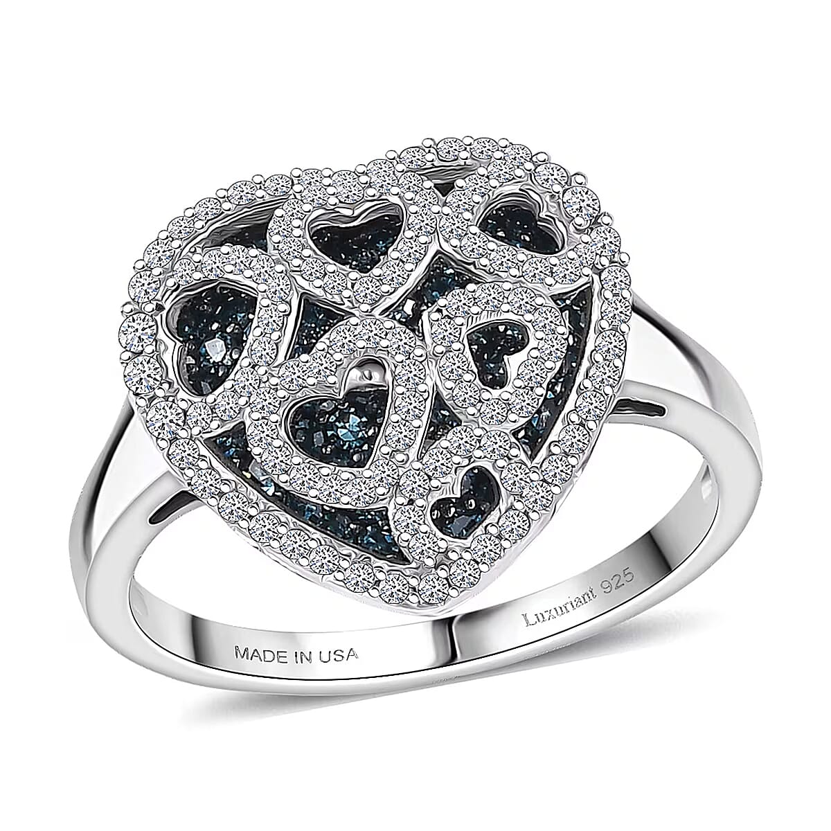 Wear the Luxuriant lab-grown blue and white diamond ring in sterling silver. This sterling silver ring presents a stunning matrix design. You will appreciate this heart ring's refined glamour for special romantic occasions.