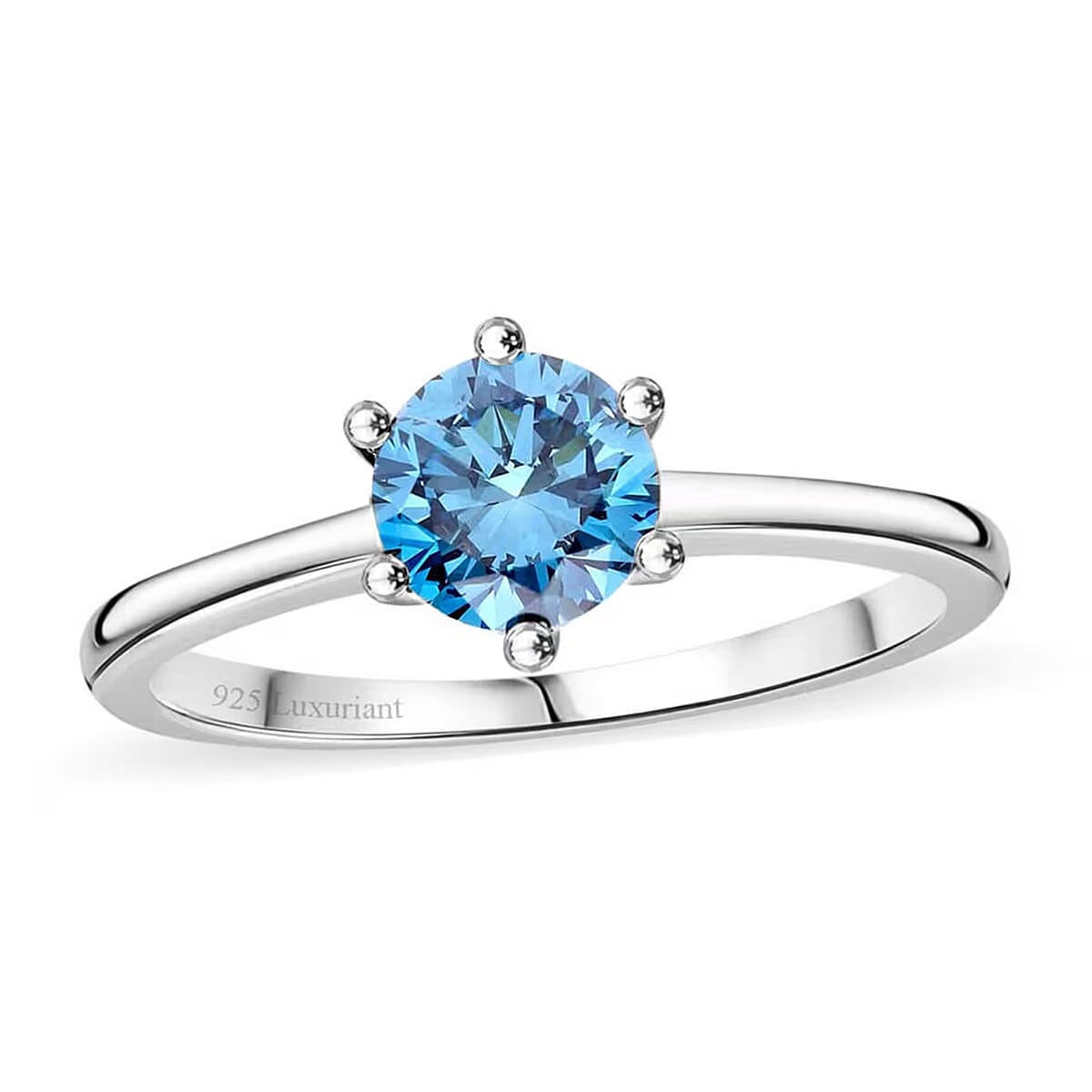 Luxuriant Lab Grown Blue Diamond VS 1.10 ctw Solitaire Ring in Sterling Silver (Size 7.0)