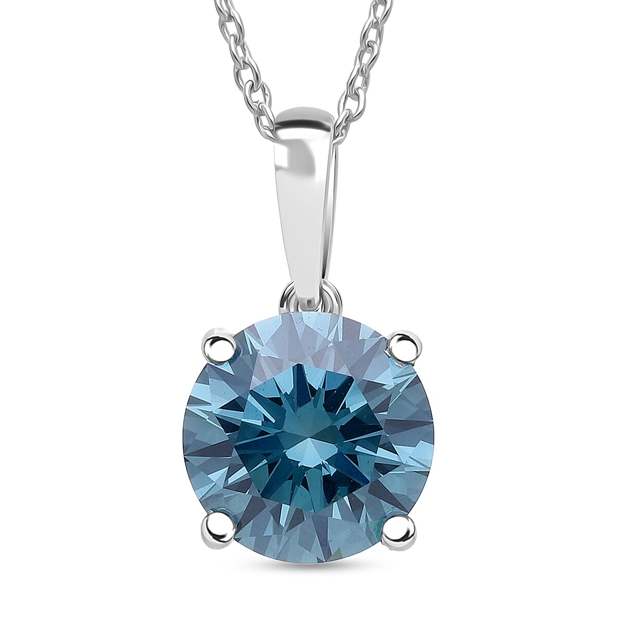 Luxuriant Lab Grown Blue Diamond (VS) (IR) 2.00 ctw Solitaire Pendant Necklace in Rhodium Over Sterling Silver (20 Inches)