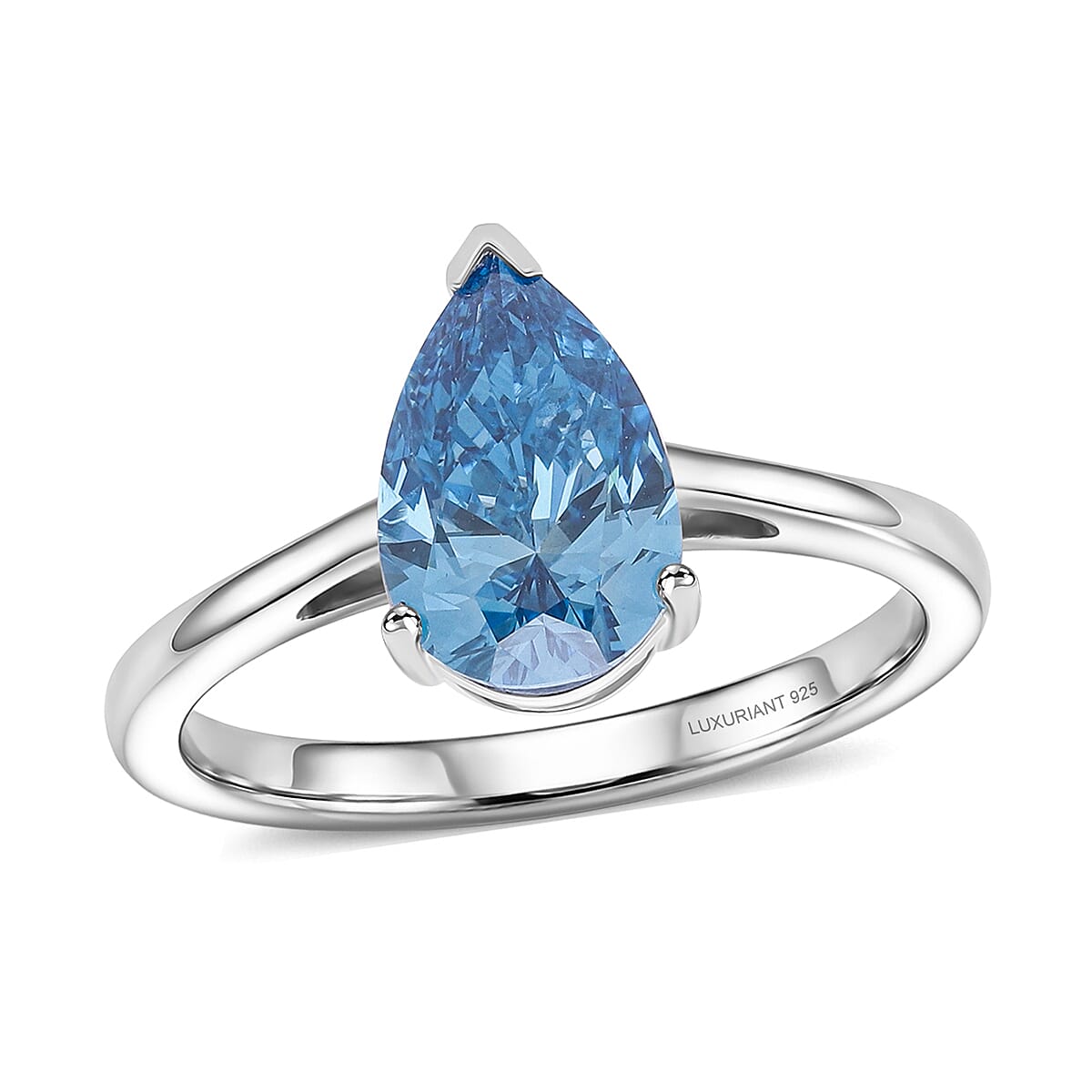 Luxuriant Lab Grown Blue Diamond (VS) (IR) 2.00 ctw Solitaire Ring in Rhodium Over Sterling Silver (Size 6.0)