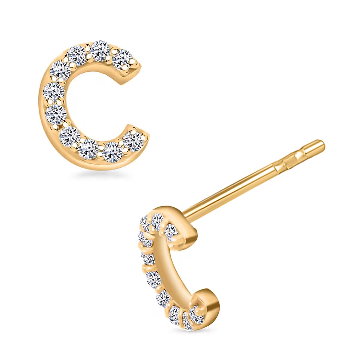 Luxuriant Lab Grown Diamond 0.10 ctw Initial C Earrings in 10K Yellow Gold