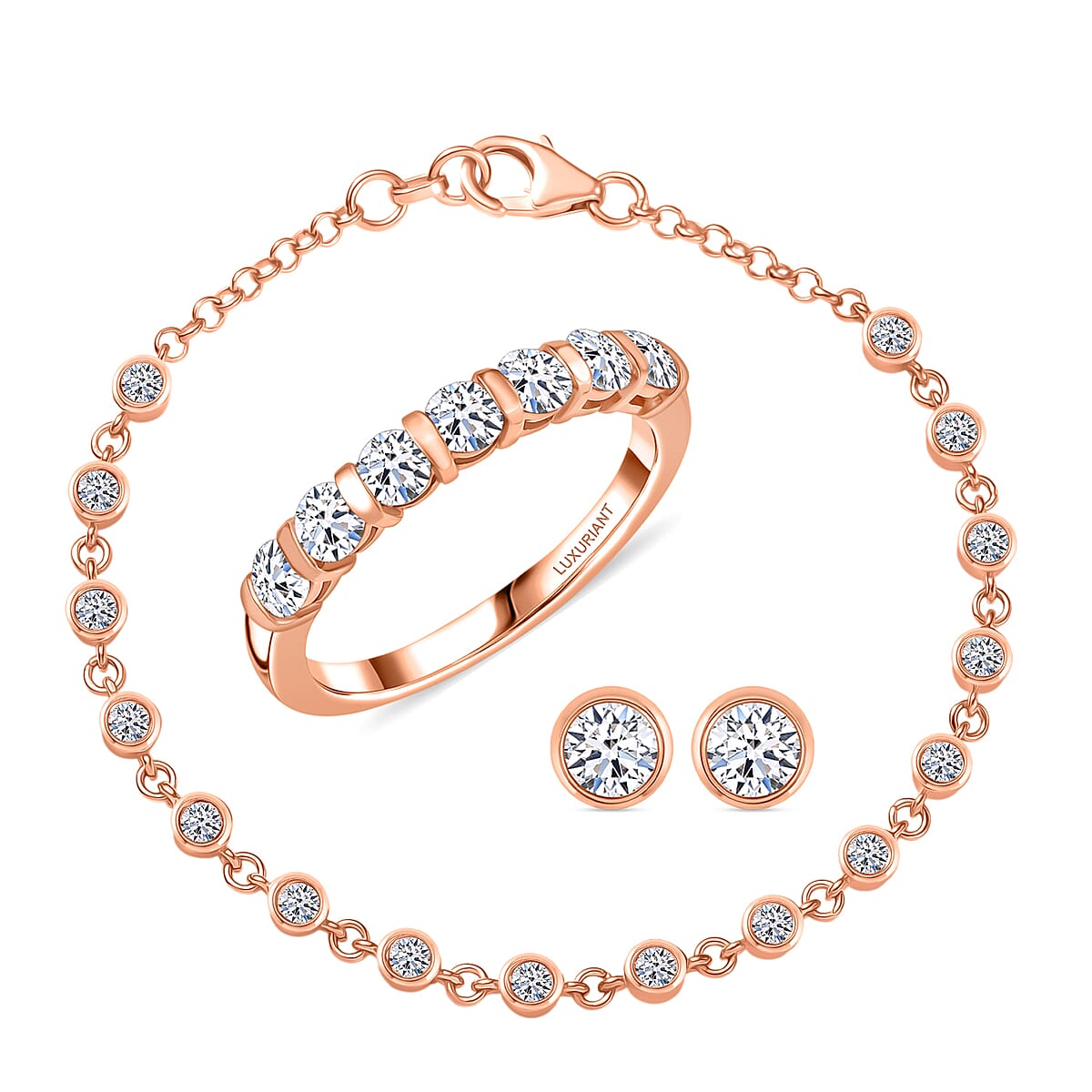 Luxuriant Lab Grown Diamond 2.80 ctw Bubbles Ring (Size 7.0), Stud Earrings and Bracelet (7.25In) in 18K Vermeil Rose Gold Over Sterling Silver