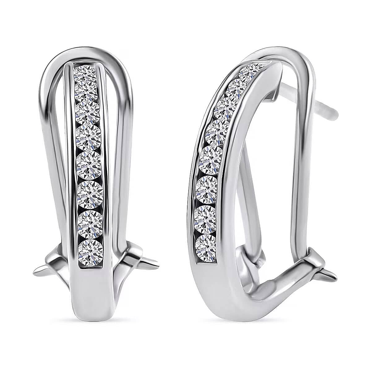 Luxuriant Lab Grown Diamond E-F VS 0.50 ctw Omega Clip Earrings in Rhodium Over Sterling Silver
