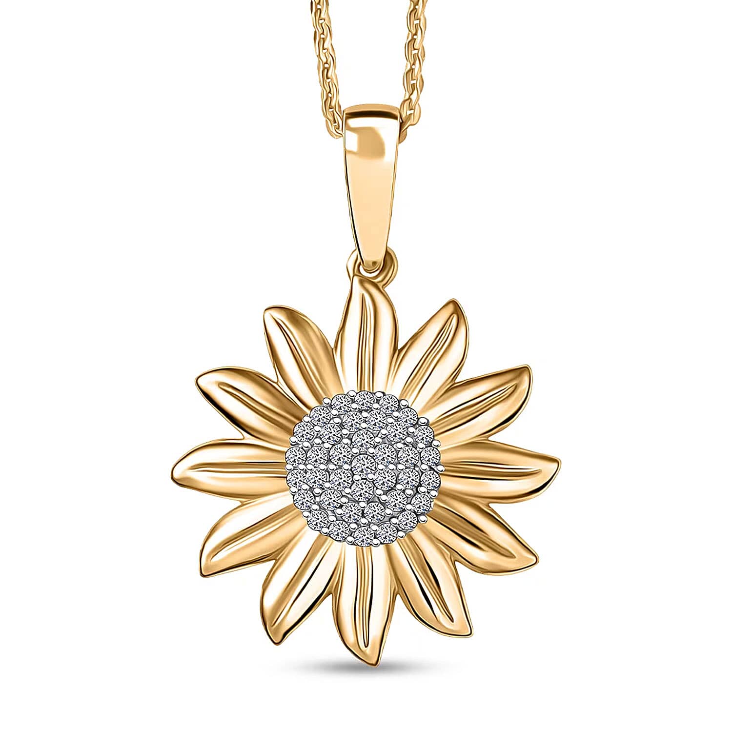 Luxuriant Lab Grown Diamond G-H SI 0.20 ctw Sunflower Bloom Pendant Necklace 20 Inches in 18K Vermeil Yellow Gold Over Sterling Silver (Del. In 10-12 Days)