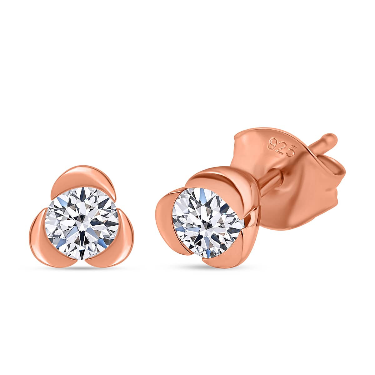 Luxuriant Lab Grown Diamond G-H SI 0.50 ctw Solitaire Stud Earrings in 18K Vermeil Rose Gold Over Sterling Silver (Del. in 10-12 Days)