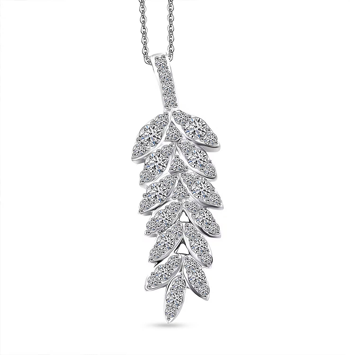 Luxuriant Lab Grown Diamond G-H SI 0.50 ctw Whispering Leaves Pendant Necklace in Rhodium Over Sterling Silver 20 Inches