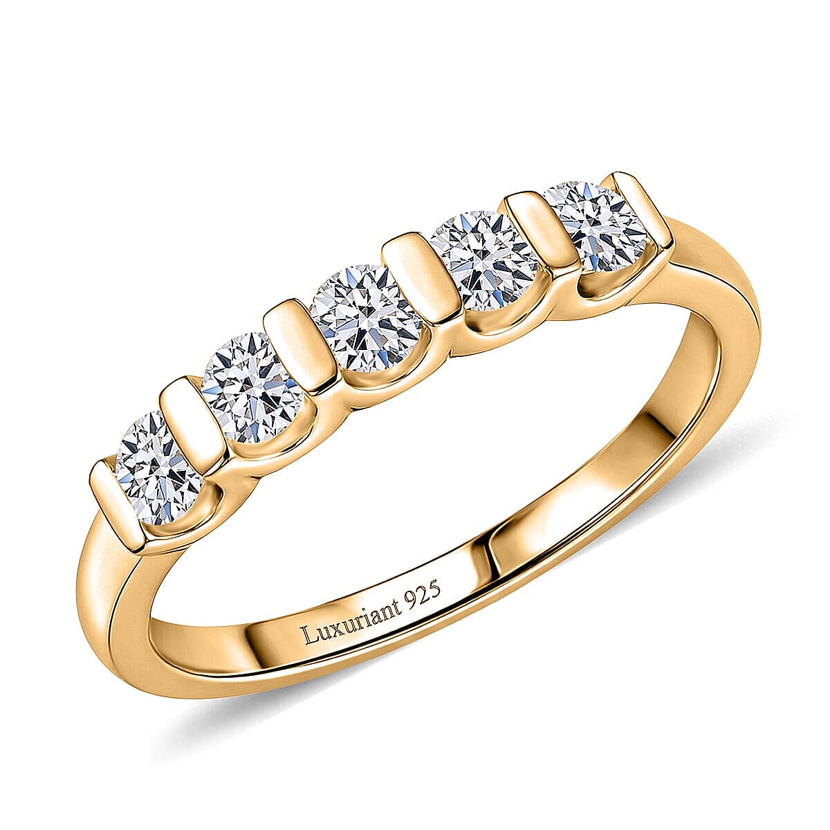 Luxuriant Lab Grown Diamond G-H SI 0.60 ctw 5 Stone Ring in 18K Vermeil Yellow Gold Over Sterling Silver (Size 10.0) (Del. In 10-12 Days)