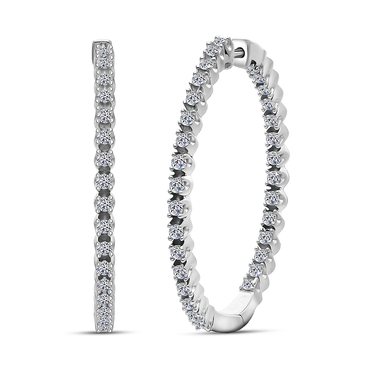 Luxuriant Lab Grown Diamond G-H SI 0.75 ctw Hoop Earrings in Rhodium Over Sterling Silver