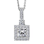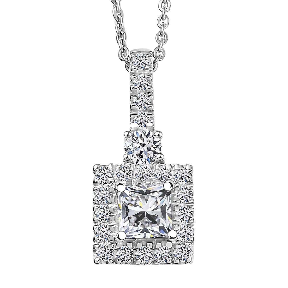 Luxuriant Lab Grown Diamond G-H SI 0.90 ctw Classic Halo Pendant Necklace in Rhodium Over Sterling Silver 20 Inches