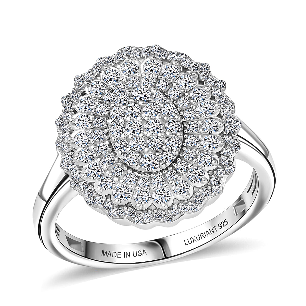 Luxuriant Lab Grown Diamond G-H SI 1.00 ctw Bloom Crest Ring in Rhodium Over Sterling Silver (Size 9.0)