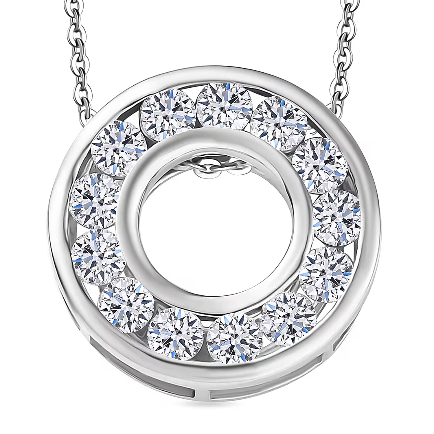 Luxuriant Lab Grown Diamond G-H SI 1.00 ctw Circle Pendant Necklace 20 Inches in Rhodium Over Sterling Silver