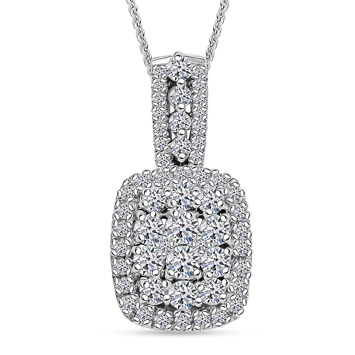 Luxuriant Lab Grown Diamond G-H SI 1.00 ctw Cluster Halo Pendant Necklace in Rhodium Over Sterling Silver 20 Inches