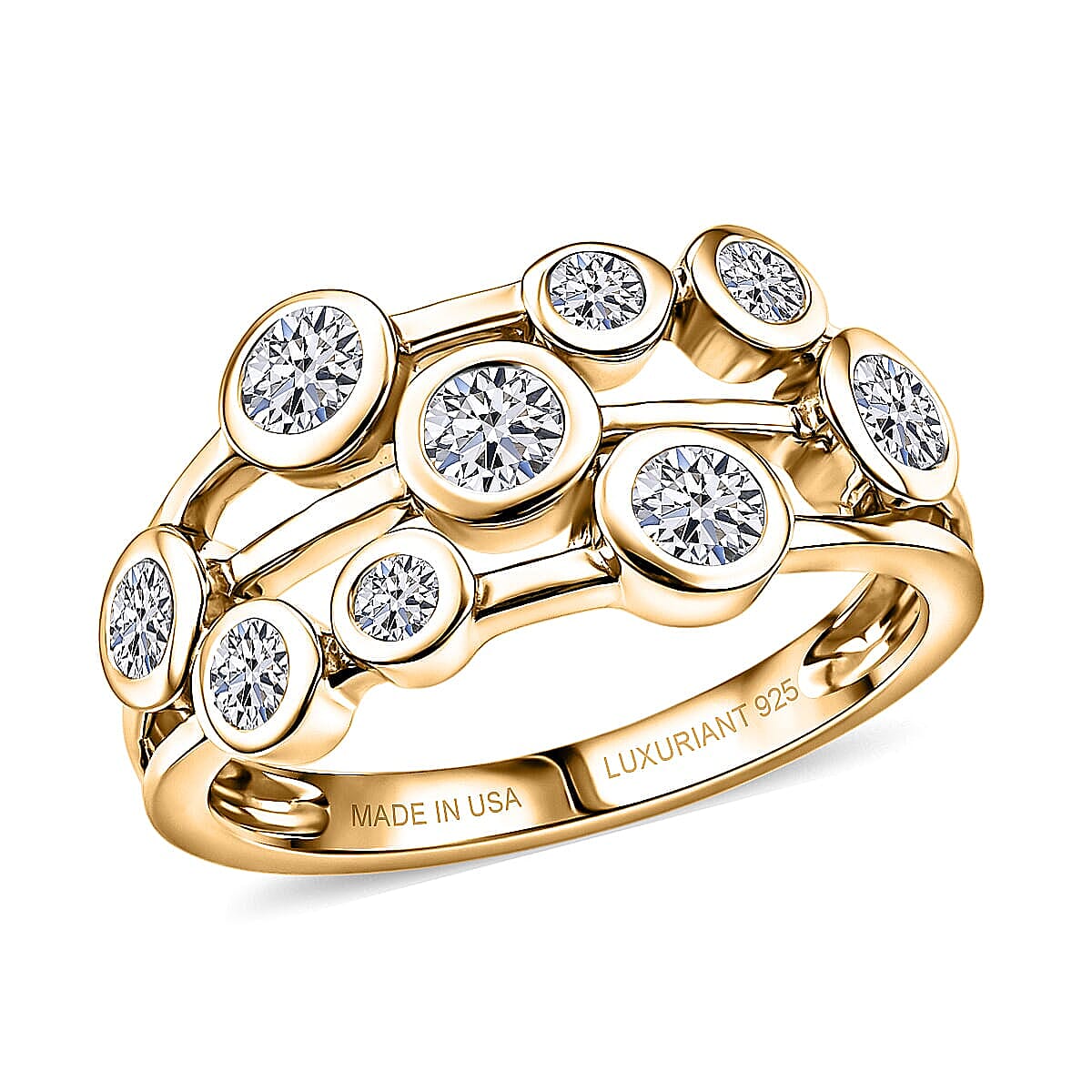 Luxuriant Lab Grown Diamond G-H SI 1.00 ctw Cluster Ring in 18K Vermeil Yellow Gold Over Sterling Silver (Size 7.0) (Del. In 10-12 Days)