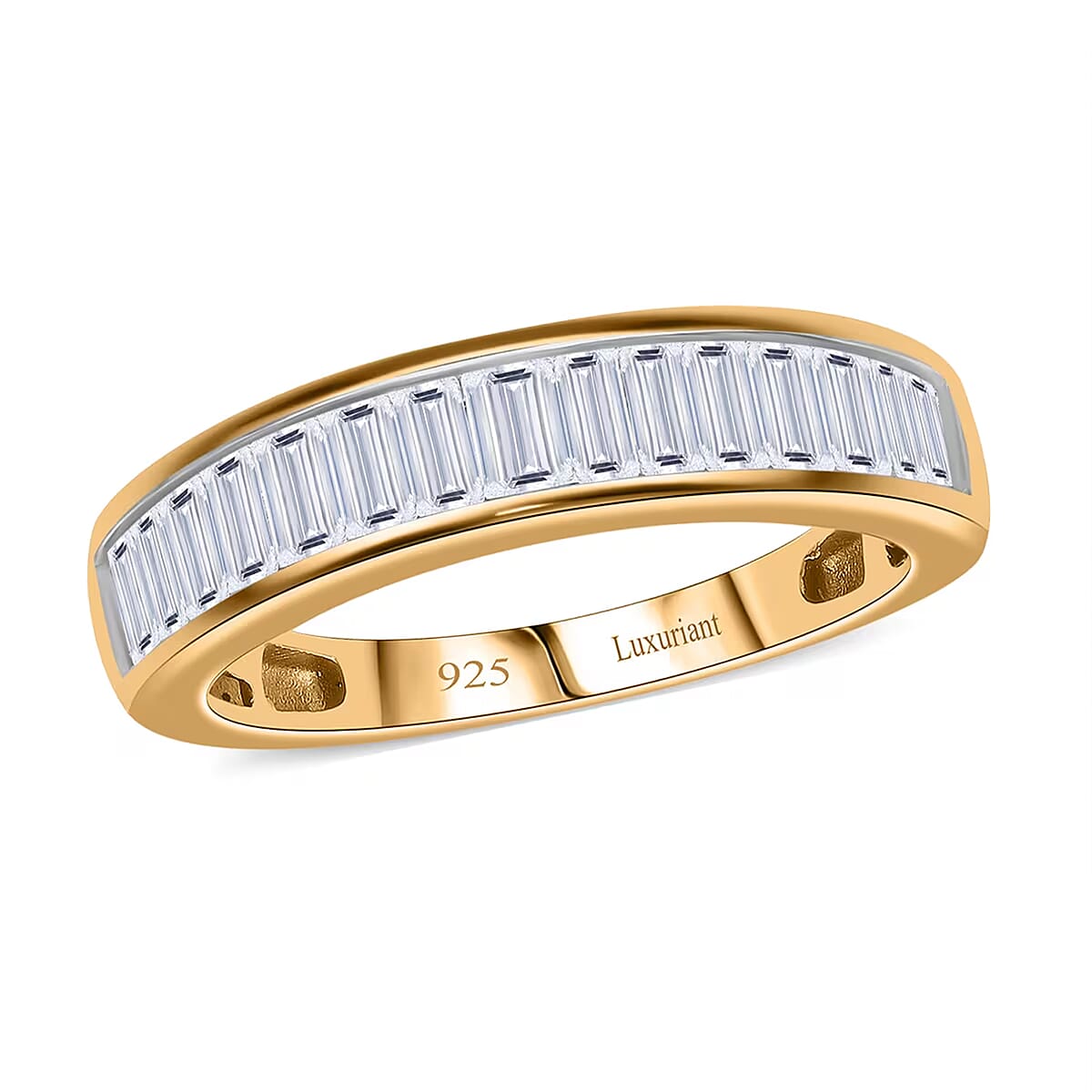Luxuriant Lab Grown Diamond G-H SI 1.00 ctw Half Eternity Ring in 18K Vermeil Yellow Gold Over Sterling Silver (Size 6.0)