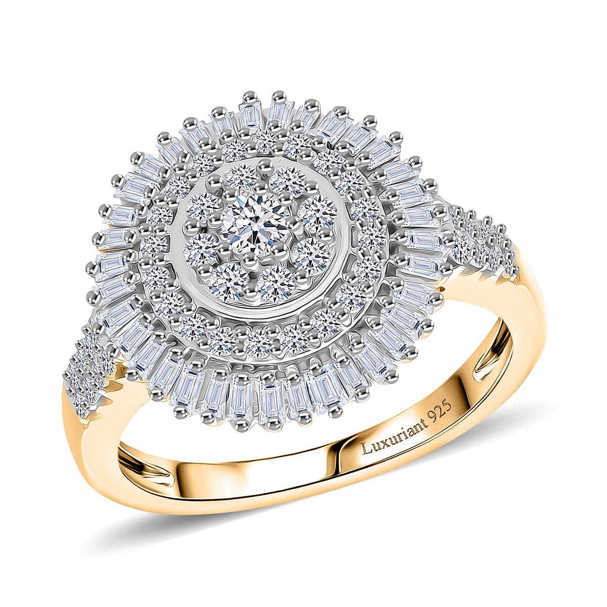 Luxuriant Lab Grown Diamond G-H SI 1.00 ctw Sunburst Halo Ring in 18K Vermeil Yellow Gold Over Sterling Silver (Size 9.0)