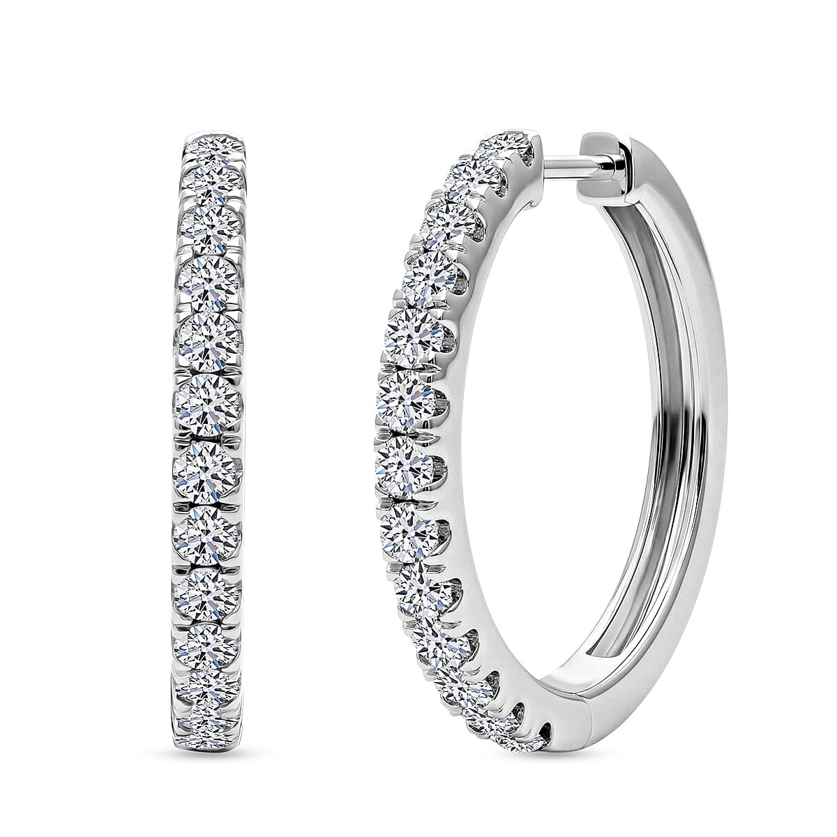 Luxuriant Lab Grown Diamond G-H SI 1.10 ctw Eternity Hoop Earrings in Rhodium Over Sterling Silver